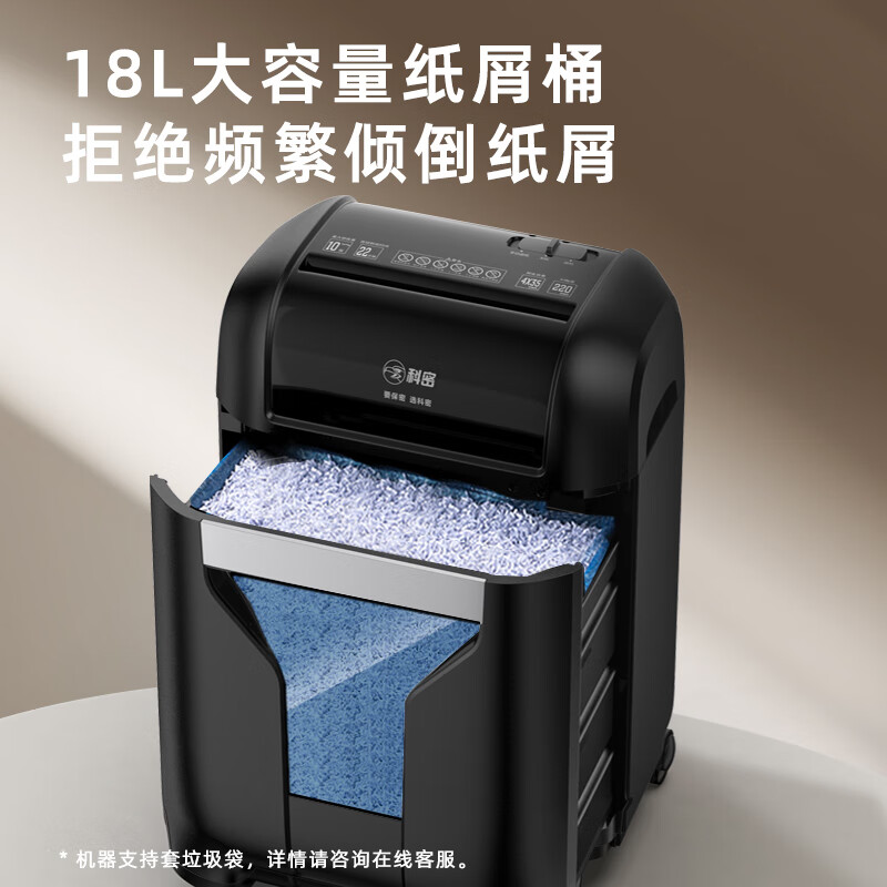 科密10张22分钟18L碎纸机保密办公家用碎纸机低噪音大型商务办公文件粉碎机4级保密可带钉碎纸碎卡DS07