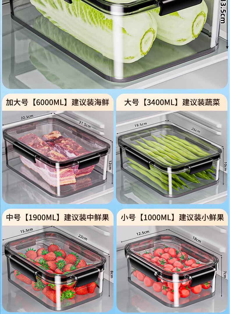 家の物语日本冰箱收纳盒食品级专用保鲜盒大容量冷冻水果整理密封盒蔬菜盒