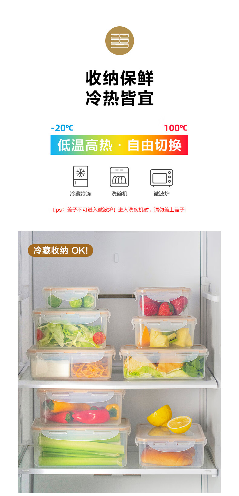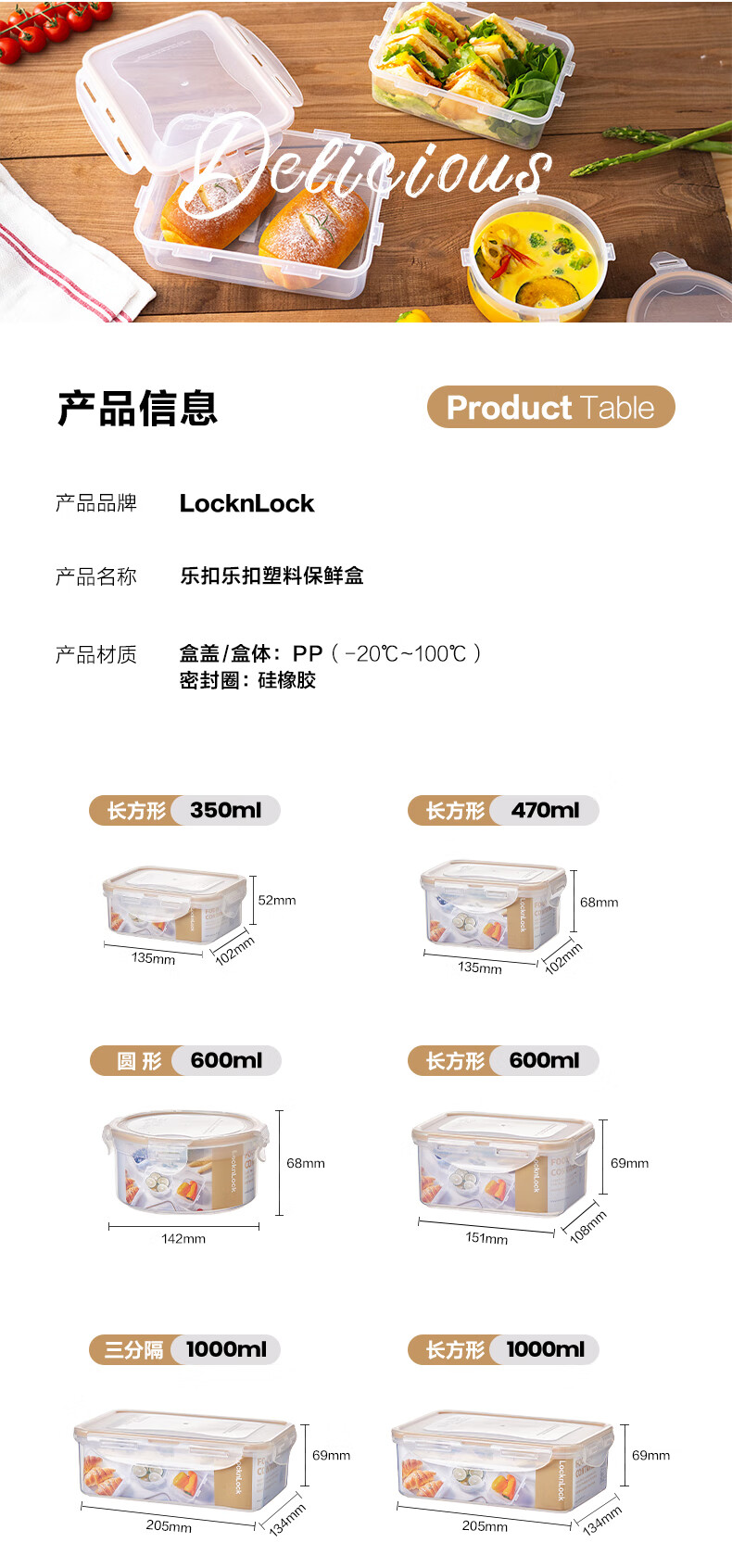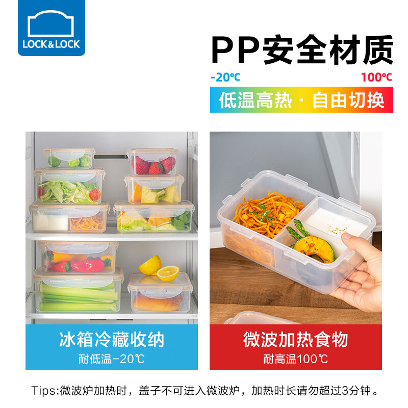 乐扣乐扣塑料饭盒微波炉上班族带饭餐盒水果盒密封便当盒保鲜盒冰箱收纳盒
