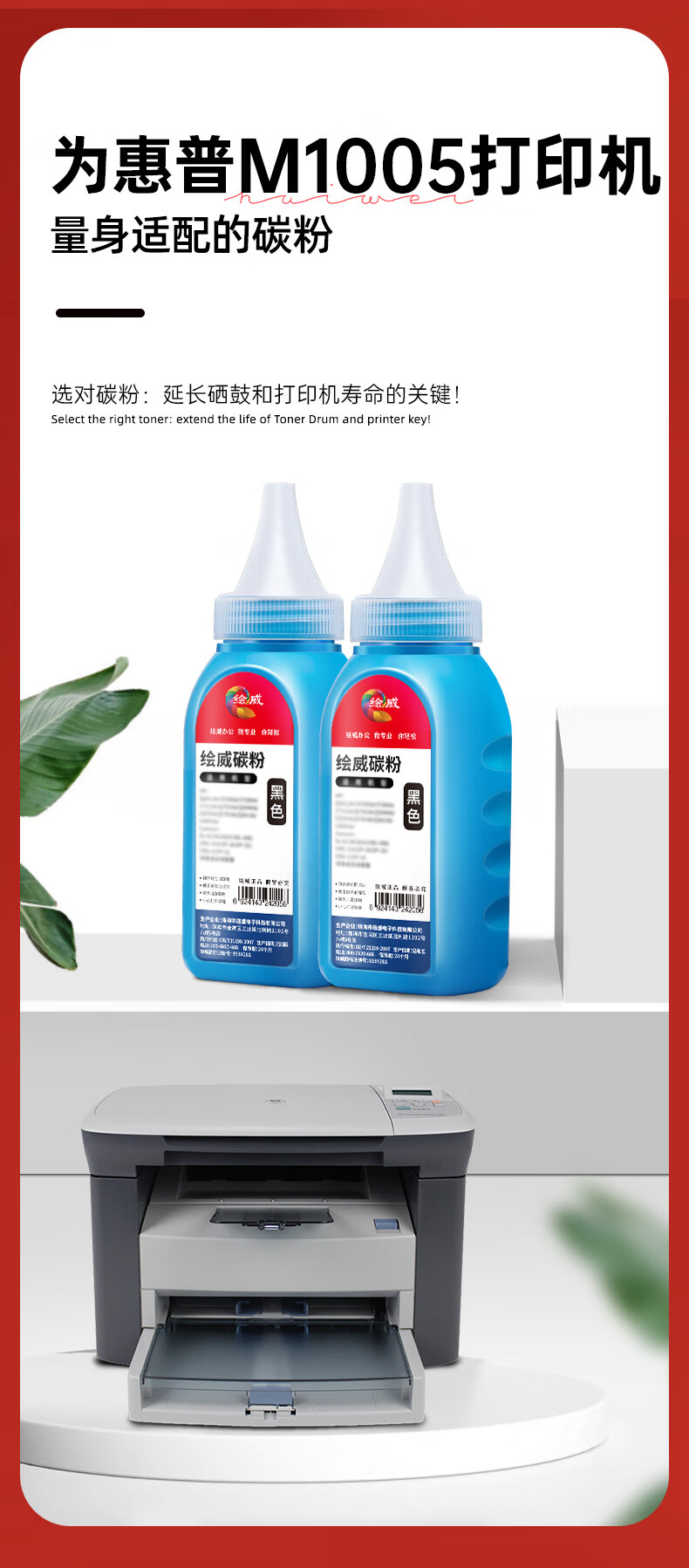 绘威M1005墨粉 适用惠普M1005墨粉 HP LaserJet M1005 MFP打印机硒鼓 M1005墨盒 粉盒 墨粉 碳粉