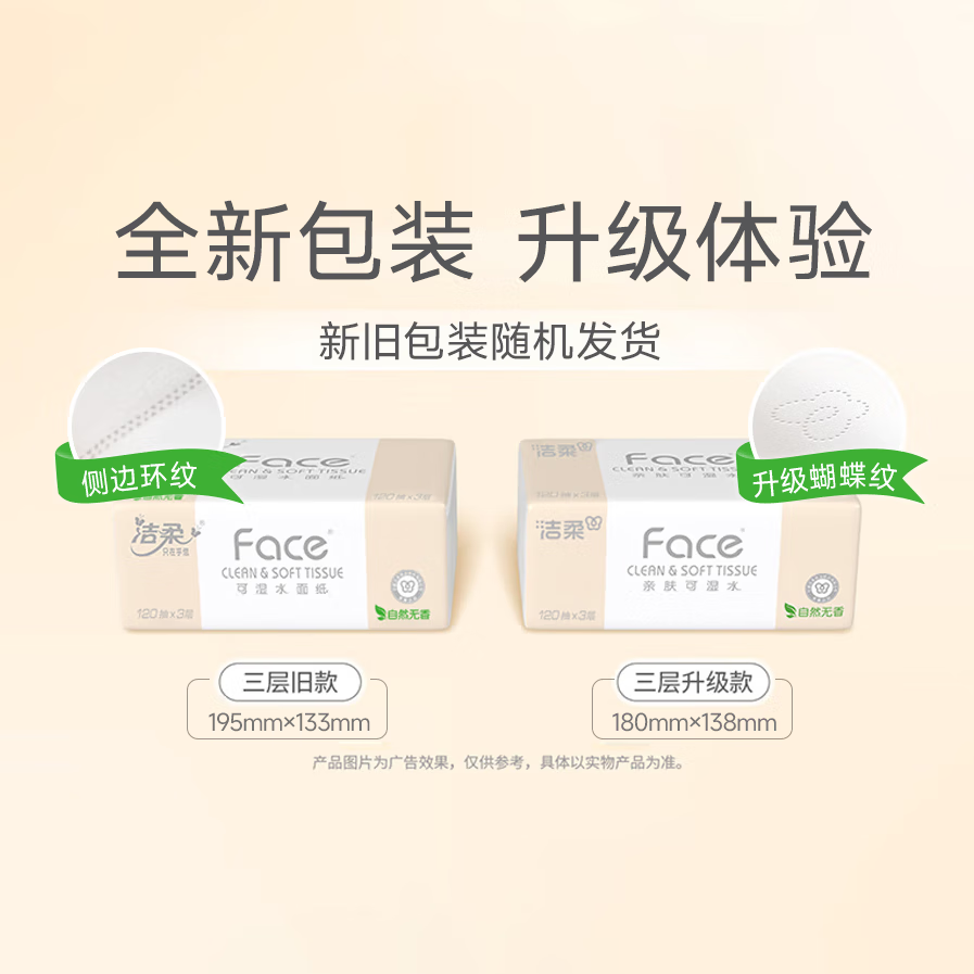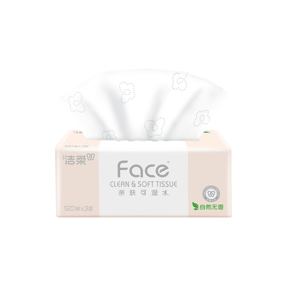 洁柔抽纸 粉Face柔韧3层120抽*24包 亲肤柔软 原生木浆面巾纸 整箱