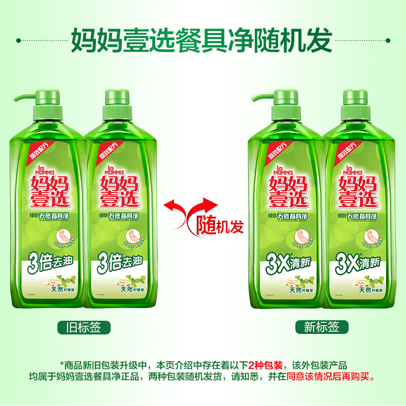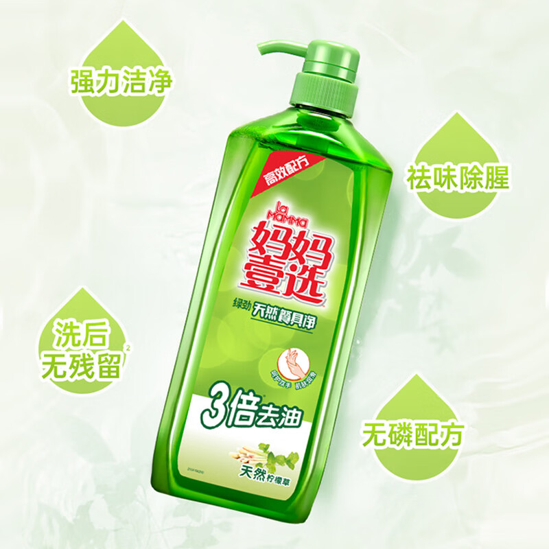妈妈壹选柠檬草餐具净1.28kg+补充装1.28kg洗洁精食品用洗涤灵果蔬奶瓶用
