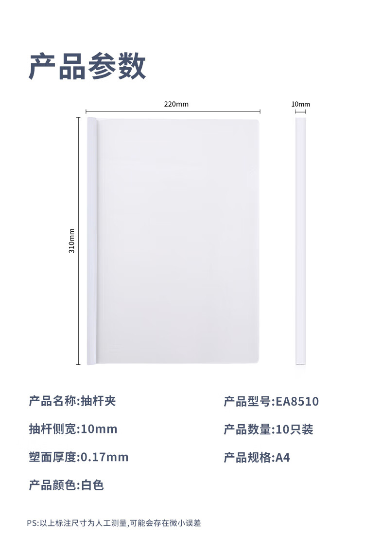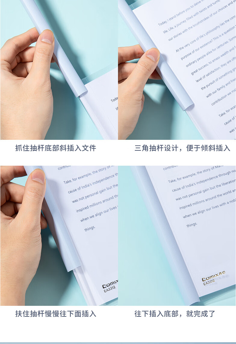 齐心(COMIX)10只装A4/10mm抽杆夹拉杆夹抽杆文件夹透明拉杆文件夹学生试卷夹资料册 办公文具EA8510